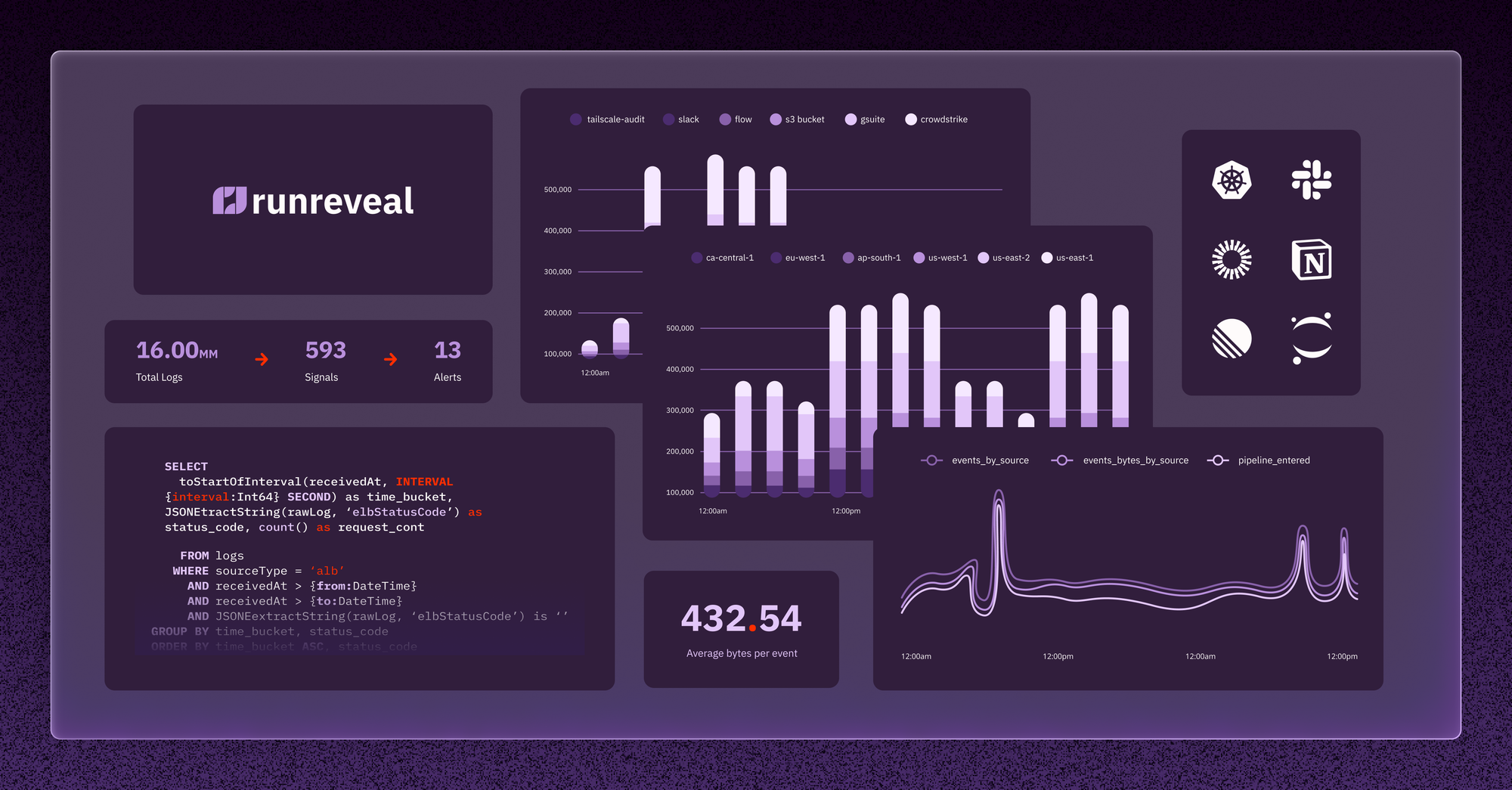 RunReveal is the unified AI-native security data platform built for modern security teams. It handles log ingestion, pipelines, detection, case management, dashboards, and AI-powered investigation in one stack, so teams can stop stitching together a SIEM, a pipeline tool, a data lake, and a SOAR platform to get the workflow they actually want.